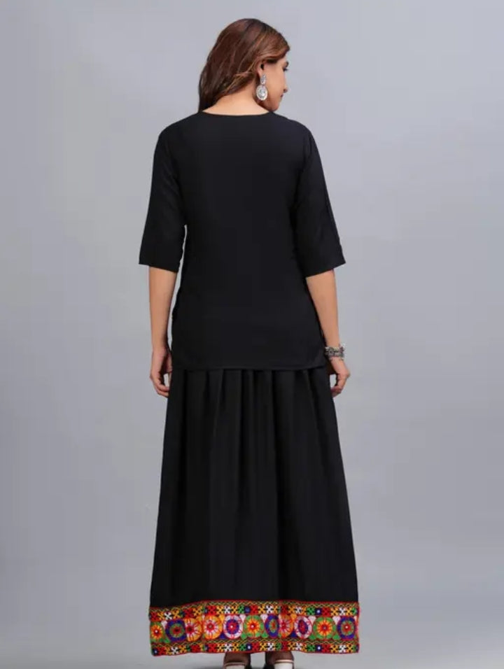 KALAVISHA Rayon Embroidery Work Top with Skirt Dress for Navratri for Women (Ghagra Choli Dress Combo for Garba Night)